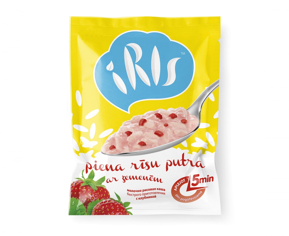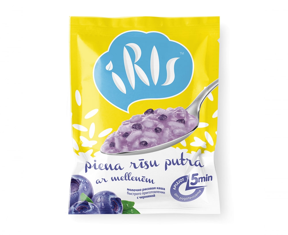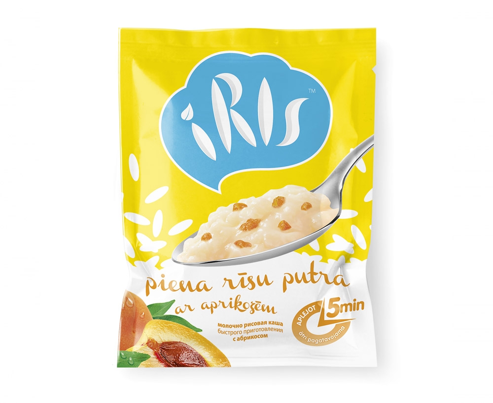 IRIS is a mix of dry rice porridge, made by the latest technologies on the basis of natural ingredients. So that to show the volatility of the product, as well as the easy preparing in a level senses, we created a modern, kittenish and friendly brand and packaging design by using rich, light colors and clear, taste characteristic elements.