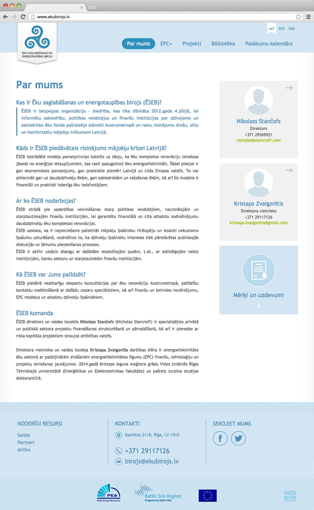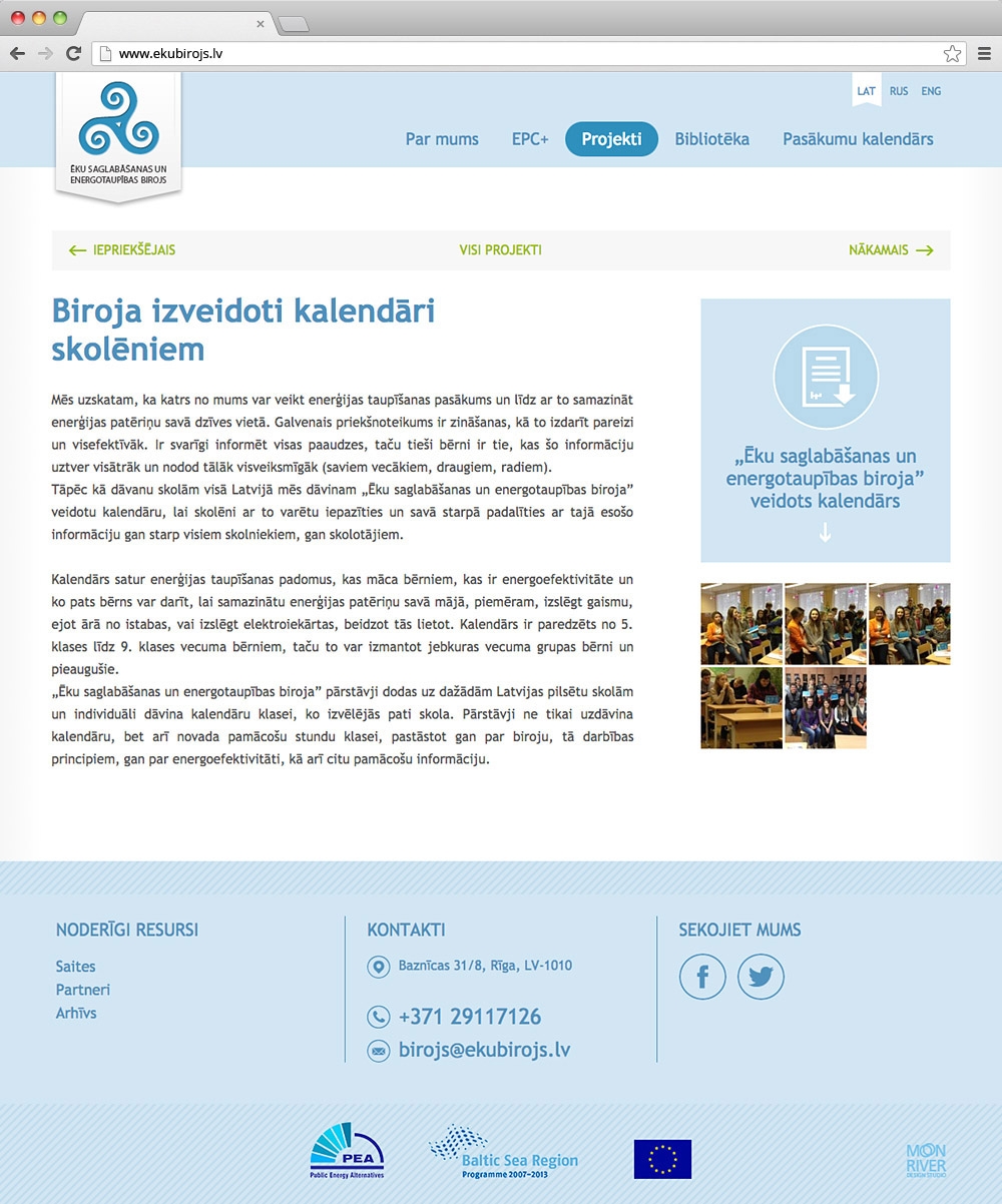 Ēku birojs is energy efficiency project company. In order to inform wider target audience about the projects, even those being in the motion and for the surfing in the internet using smart phones, we made a conceptually simple responsive web design page, which is functionally easy to use as in the computer than in the smart phone. View site >