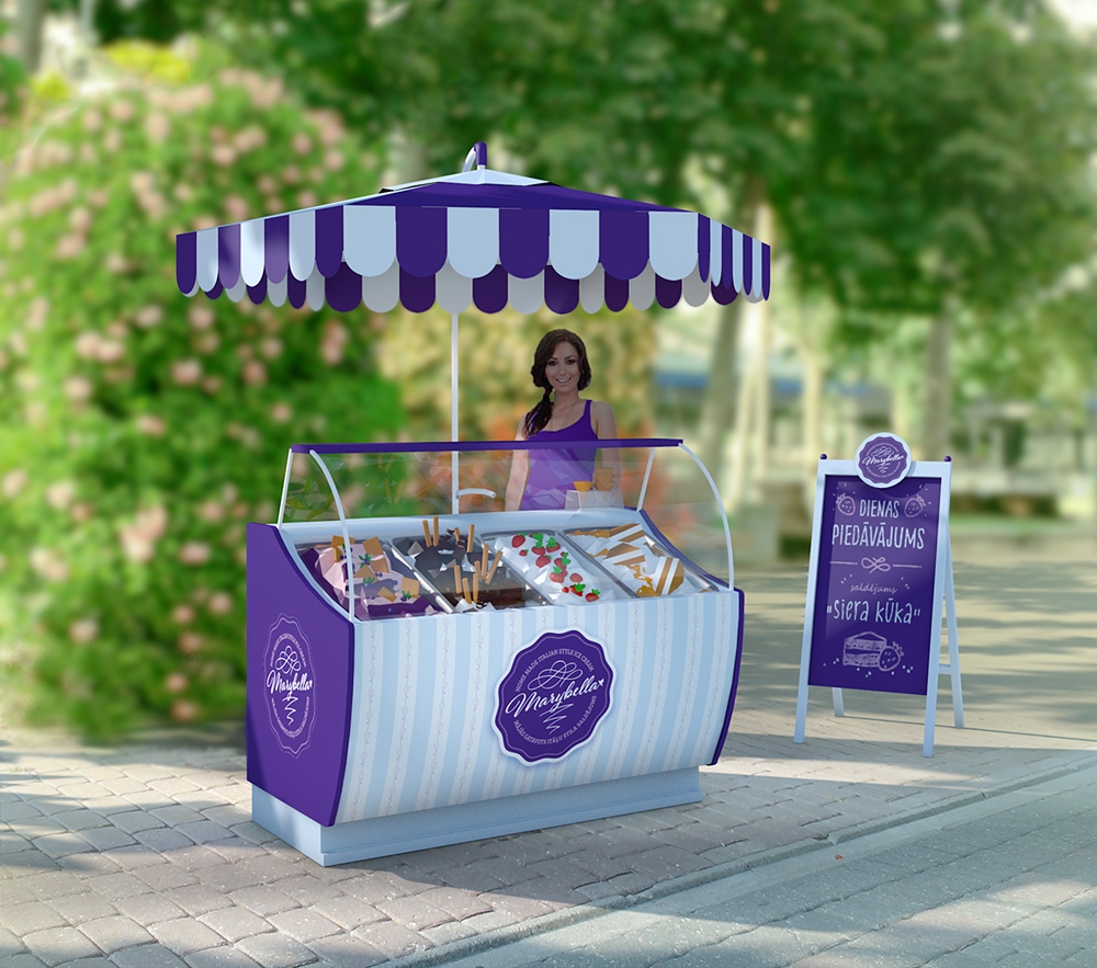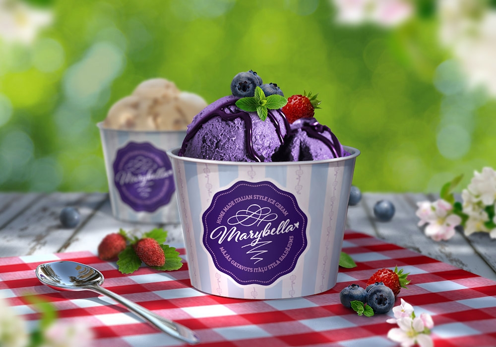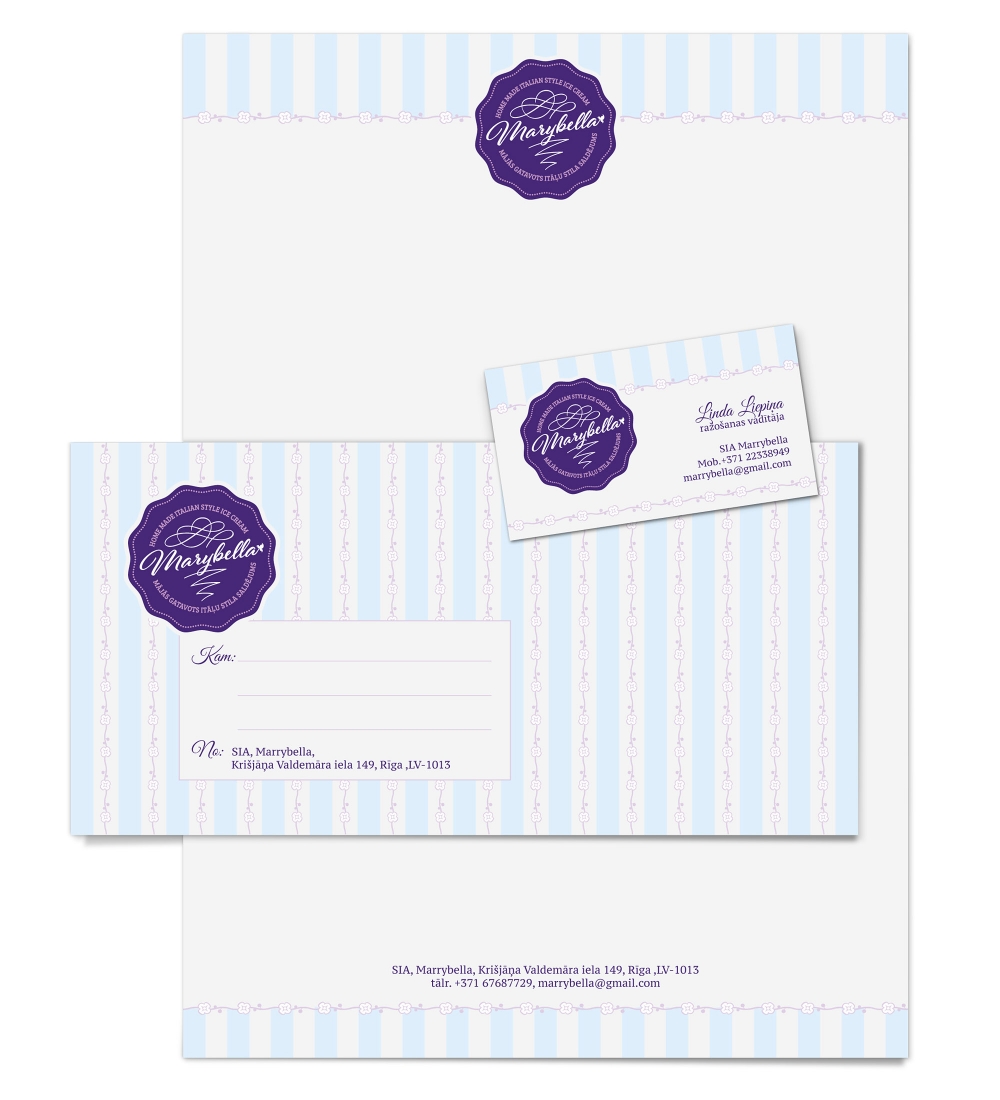 The company Marybella produces not – foamed, real Italian style gelato, equivalent to the best Italian samples, and we can assure that it is the best home ice cream, which is available in Latvian market at the moment. While working on the brand and packaging design graphical conception, our goal was to conjure the feeling of a small, domestic company with own individual and playfully romantic character, providing marvelous products, made with love and accuracy and emphasizing that it is not mass production.